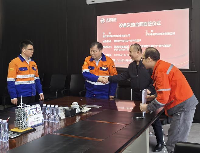 2025 年 11 月 18 日,博賽集團(tuán)全資子公司重慶高峰新材料科技有限公司(下稱 “高峰新材料”)與蘇州中陽熱能科技有限公司(下稱 “蘇州中陽熱能”)正式簽署合作協(xié)議,后者將為高峰新材料提供固定式矩形雙室燃?xì)馊刍癄t及燃?xì)獗貭t的供貨與安裝服務(wù),助力其鋁板帶箔及再生鋁綜合利用項目的高效推進(jìn)。